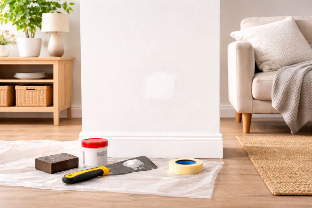 A basic drywall repair kit typically includes everything you need to handle these small fixes efficiently.