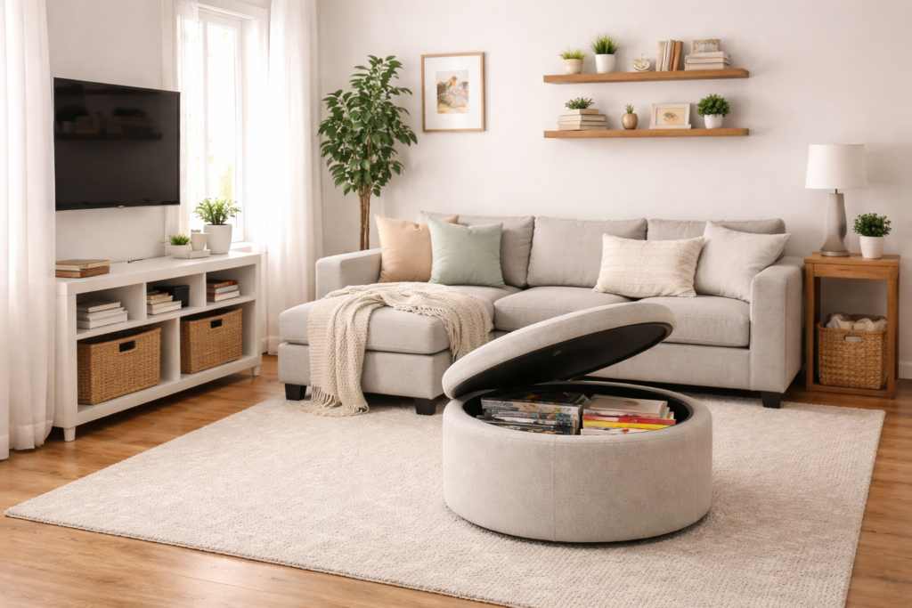 Living Room Storage Hacks That Keep Your Space Clean and Open (Simple Ideas)